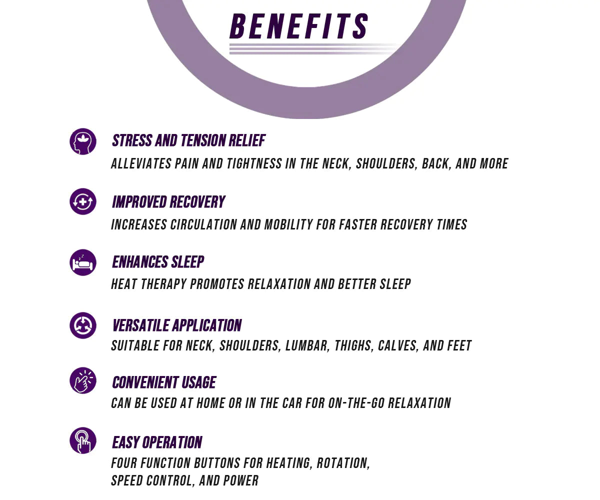 • Multi-Area Use: Perfect for neck, shoulders, back, waist, glutes, and thighs